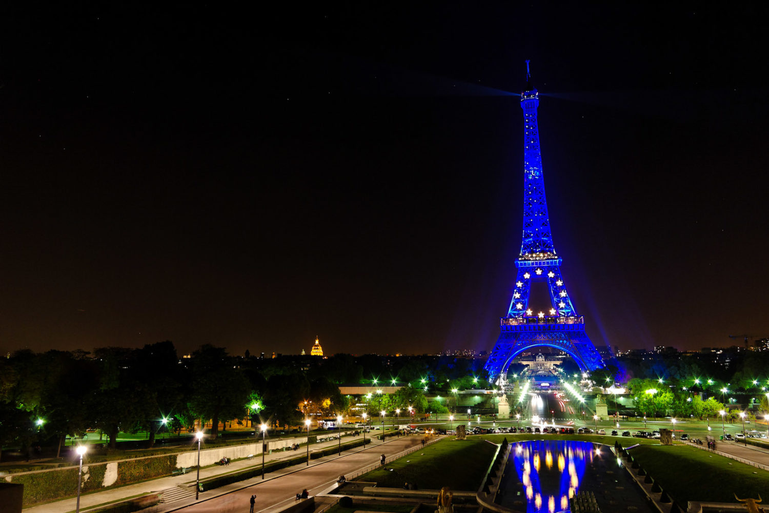 Pour fêter la présidence de la France à l’union européenne du 1er Juillet au 31 décembre 2008, l’éclairage nocturne de la Tour Eiffel a été mis aux couleurs du drapeau européen.