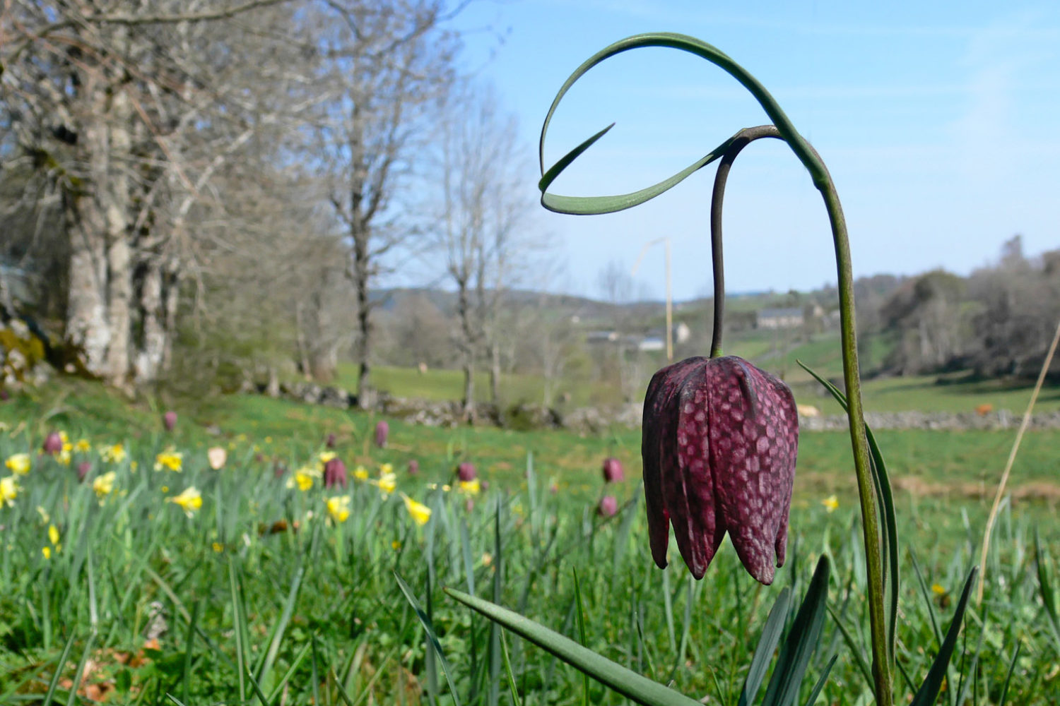 La fritillaire Pintadine est une petite fleur sauvage vivace très rare et protégée dans toute la région Auvergne.