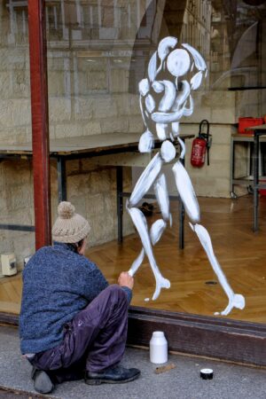 Jérome Mesnager 12×12 par Le Capitaine · Publié 7 décembre 2024 · Mis à jour 14 décembre 2024 Jérome Mesnager peint au blanc de Meudon son fameux « bonhomme blanc » sur 26 vitrines du viaduc des arts dans le cadre du festival culturel 12×12 du 12eme arrondissement.
