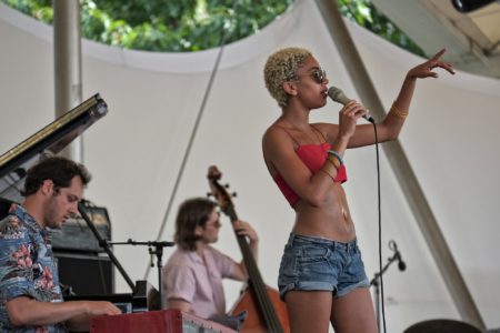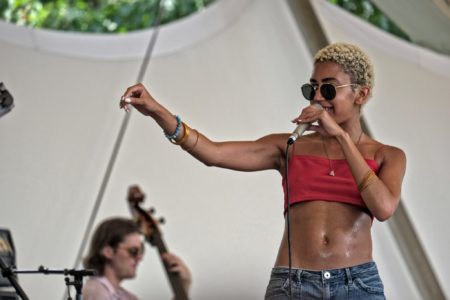 Ce dimanche d’été, nous étions au parc floral de Paris pour voir et écouter Judi Jackson, la nouvelle voix controversée du Jazz. Beaucoup d’énergie en tout cas et des poses plutôt photogéniques.