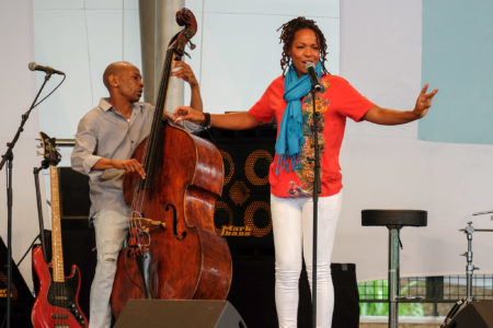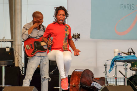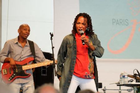 Nous étions le week-end dernier sous l’aile Delta au parc Floral de Paris ou le Paris Jazz Festival a eu la très bonne idée d’inviter dimanche après-midi, Lisa Simone et ses musiciens… L’ovation du public à cloturé 90 minutes de bonheur que nous ont procuré ces brillants artistes, la lumineuse Lisa Simone dont la voix est aussi incroyablement puissante qu’harmonieuse, le guitariste virtuose Hervé Samb, le précis bassiste Reggie Washington et l’inventif batteur Sonny Troupé. En un mot, un très beau dimanche d’été !